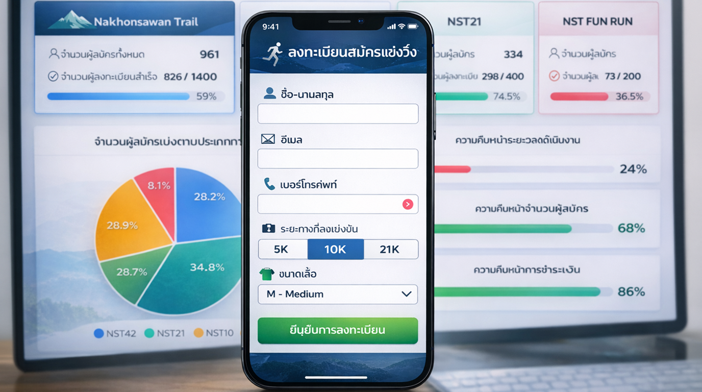 รองรับนักวิ่งจำนวนมาก พร้อมรายงานผลและอันดับแบบ Real-time ทันทีหลังเข้าเส้นชัย