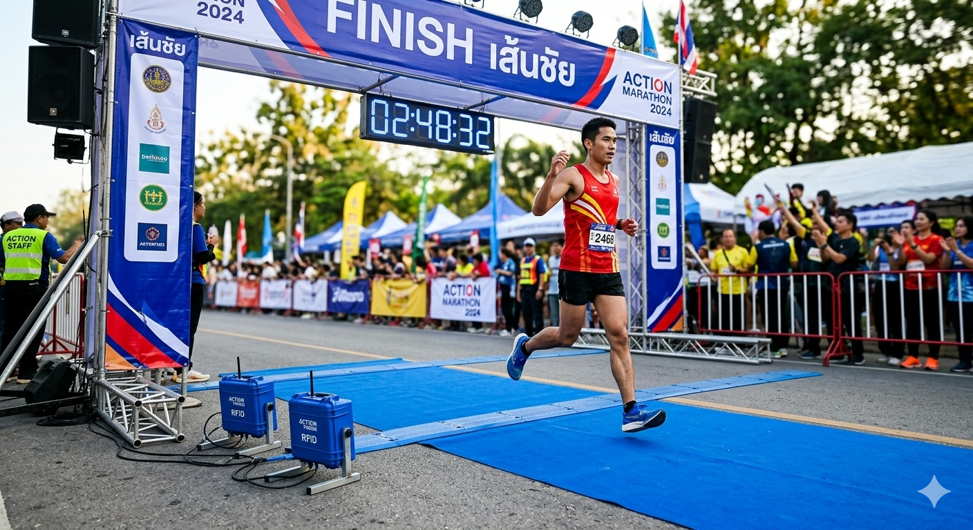 ระบบจับเวลาด้วย RFID มาตรฐานระดับสากล แม่นยำและเสถียร รองรับนักวิ่งจำนวนมาก พร้อมรายงานผลและอันดับแบบ Real-time ทันทีหลังเข้าเส้นชัย แสดงผล ตรวจสอบ และติดตามข้อมูลได้ทุกที่ ทุกเวลา อย่างรวดเร็วและสะดวก